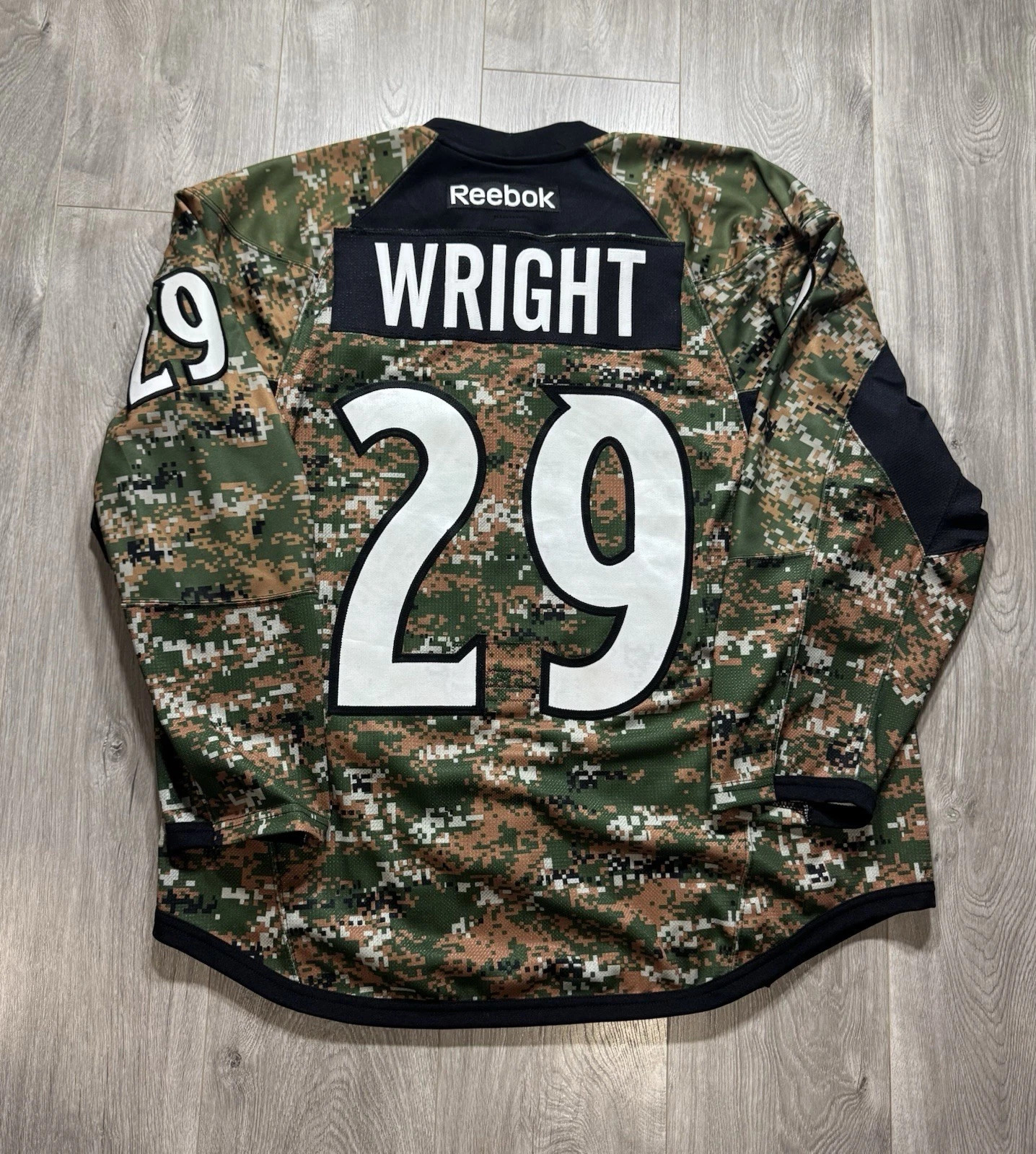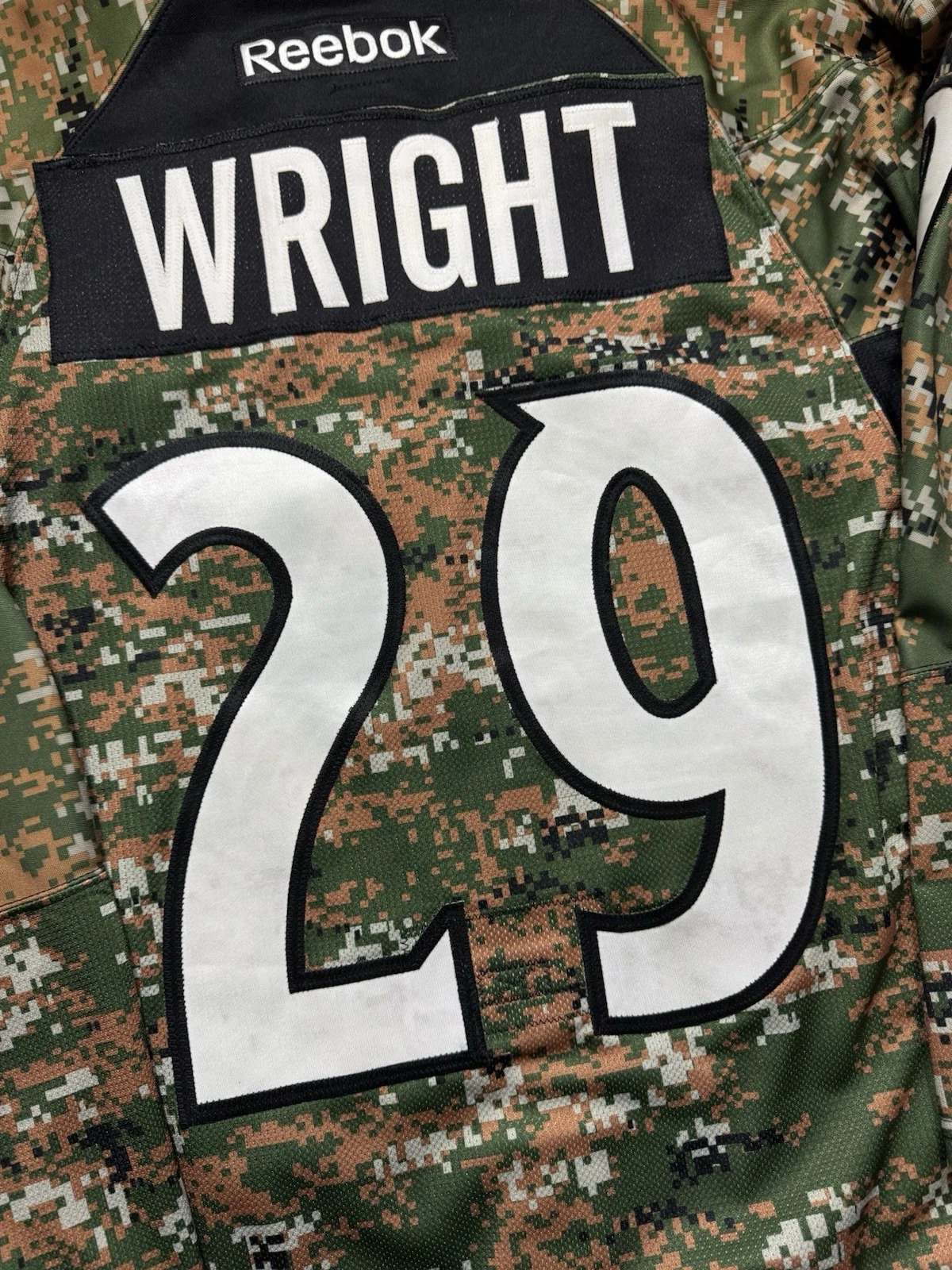 This 2015-17 Salute to Service, customized as #29 “Wright”, was brought to my attention as an easy swap to MacKinnon. While my jersey buddies who found this jersey were absolutely right, I was reluctant to add a MacKinnon warm-up jersey to the collection. I figure the warm-up jerseys are an opportunity for me to add other players to the collection.