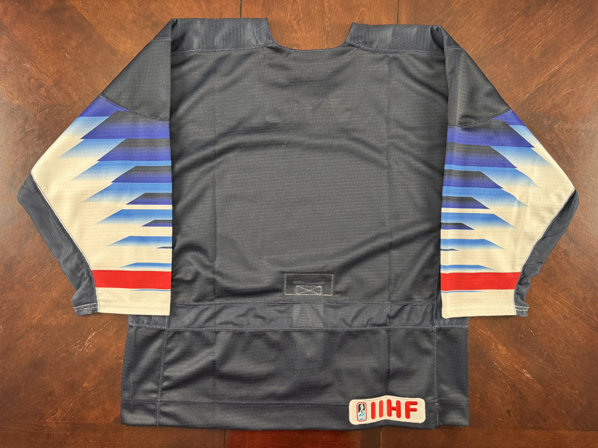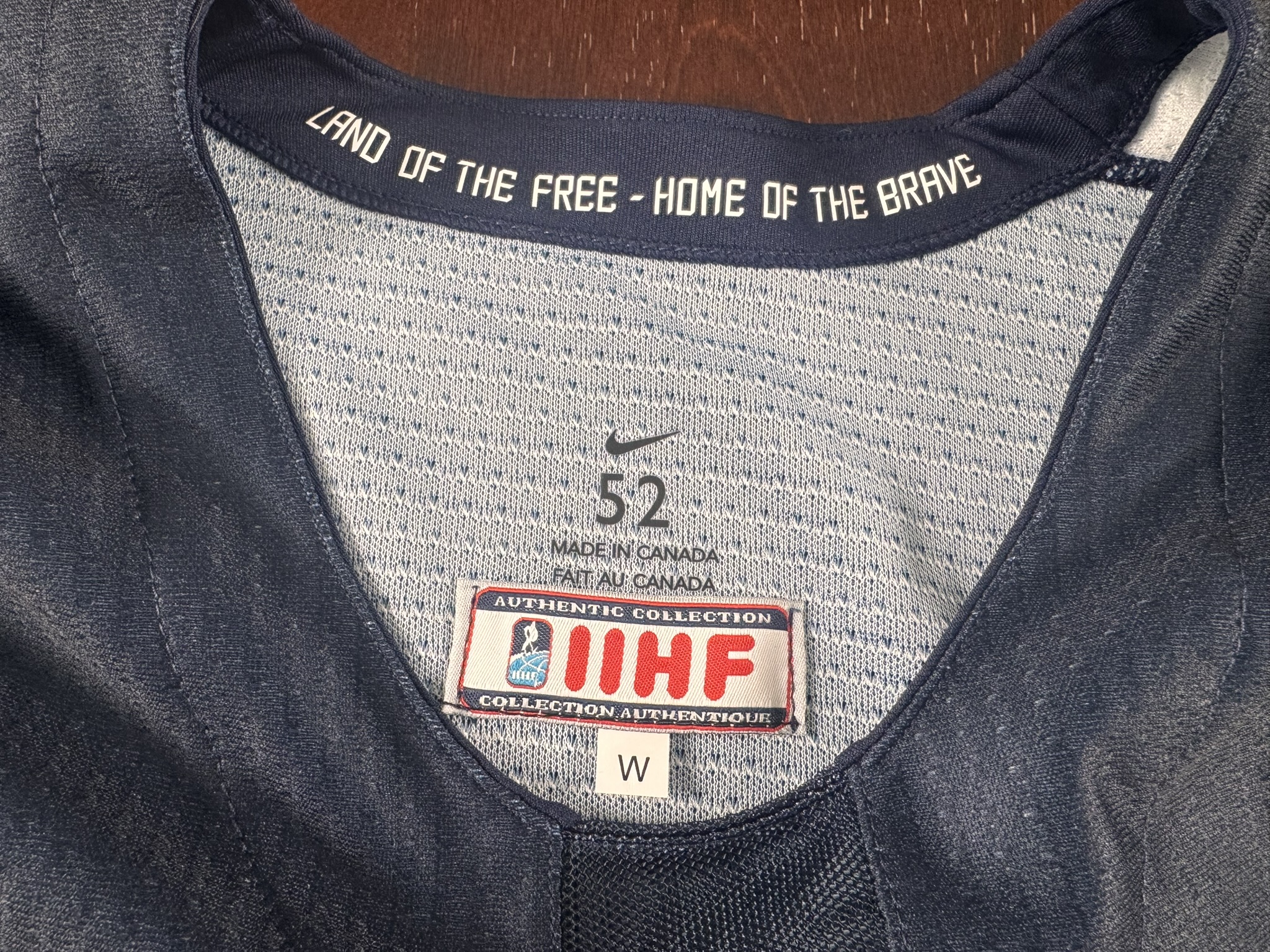 I initially purchased a women’s Team USA from a website I’d never heard of, Never Made it Pro Stock, as my jersey buddy, MBur, scouted what I thought was a game-issued jersey. That jersey turned out to be a Jincy Roese gamer with the name on the back removed (NOBR). MBur told me if I were interested, he’d trade a blank women’s Team USA for the Jincy gamer, which I agreed to. This jersey arrived a couple days later after we agreed to trade. I plan on making this jersey into a Hilary Knight and will eventually ship it off to EPS for customization.
