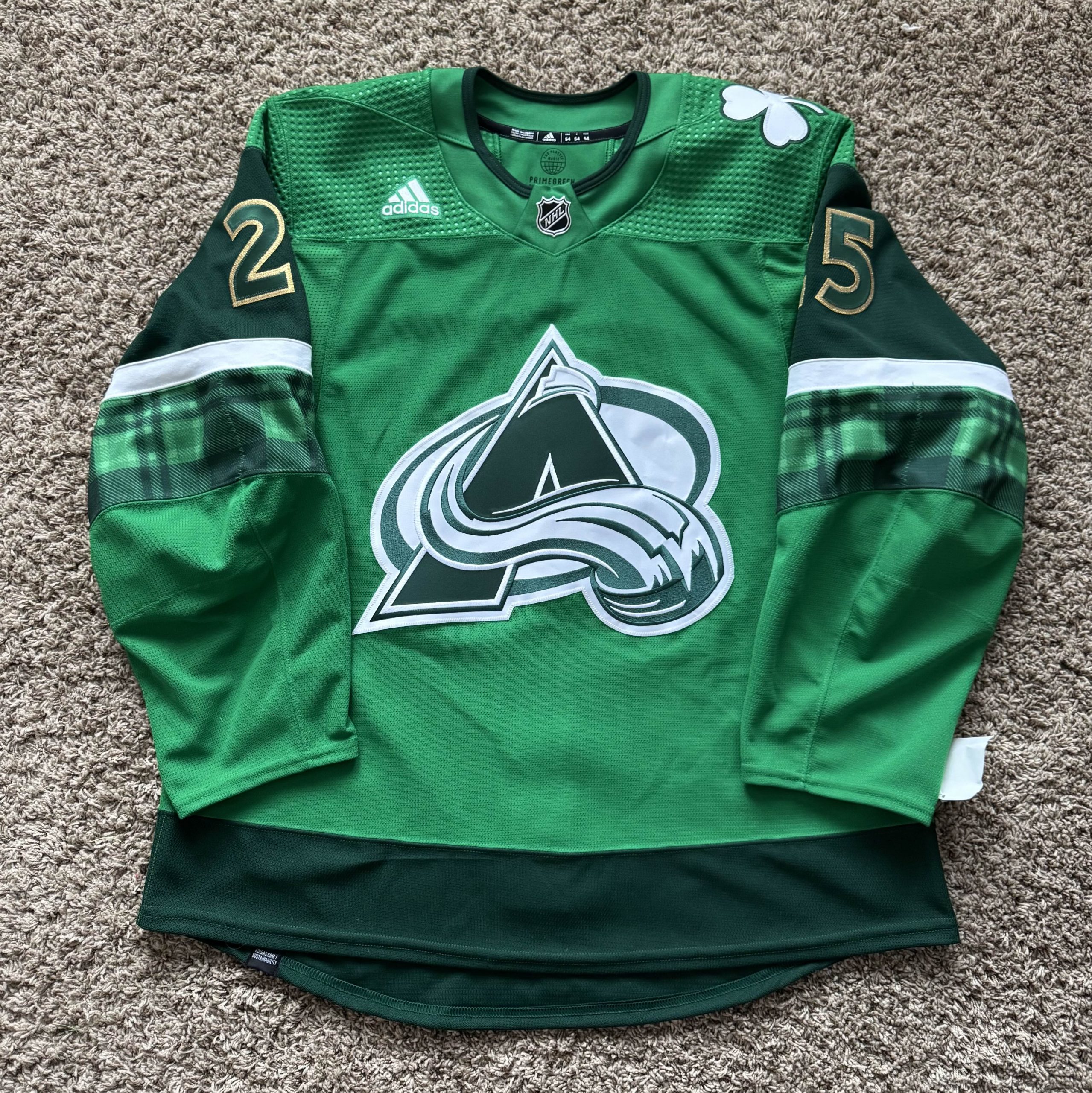I browsed the kits available at Customize Sports and found one I liked, the Buffalo Sabres 2019 St. Patrick’s Day Jerseys. But it’s me, and since I had free rein, I wanted to make some tweaks to it. I placed an order with CS and asked if we could use the Avs font for the name and numbers, and delete the shamrocks at the bottom of the numbers. A couple of days later, I received a proof from CS and quickly gave them the AOK.