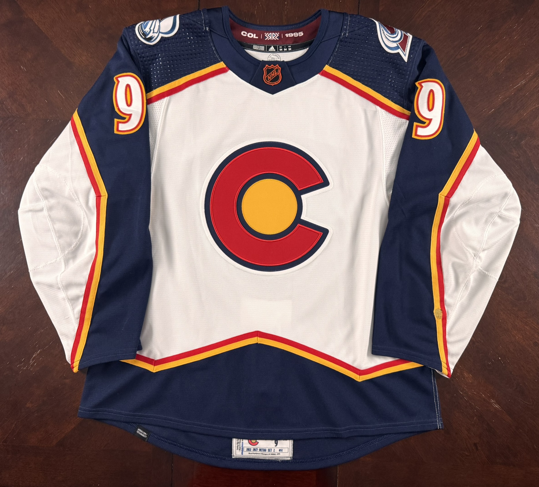 Joel snagged this jersey at the opening night blowout sale and later learned that the ERod RR2 jersey that the Avs auctioned was only game-issued which sold for around $1300! ERod only wore this jersey for one of the four RR2 games in the 2022-23 season, on Dec 29th. That makes this only ERod RR2 Gamer out there! Adding even more icing to the cake was that ERod scored a goal on 12/29 against the Kings in this jersey! Now I’ll definitely be trying to track down that goal puck!