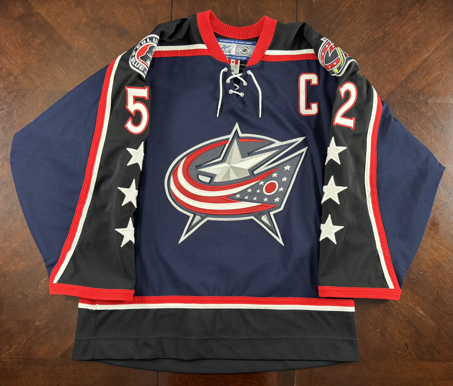 I found this CBJ Alternate 6100 on eBay but the initial listing price was beyond what I wanted to spend on a Blue Jackets jersey, while going through another downsize/re-focus the collection phase. I sent in an offer a little more than I was hoping to pay. The seller replied with a counteroffer. He went through a couple of rounds of lowering the prices. That’s when I sent in my offer which was accepted. I got this jersey in February 2024, sent it off to EPS for customization in July, and got it back in February!